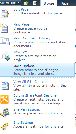 SharePoint 2010 : Click Site Actions > More options… > Lists