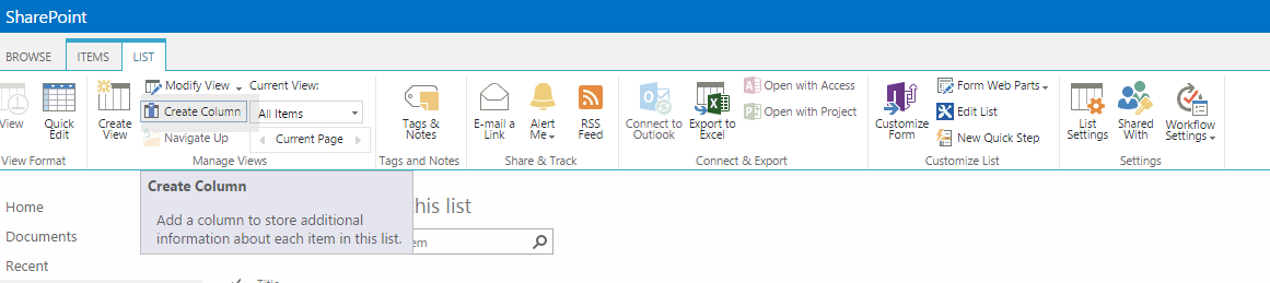 1. Select a SharePoint site on which to create the Central Column Mapping list. All OnePlaceMail users must have access to read the Central Column Mapping list so keep this in mind when selecting a site to host the list.