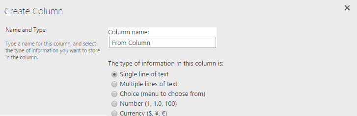 6. Specify the column name as From Column. It is important to use this exact column name and case is important, make sure From starts with a capital F and Column with capital C.