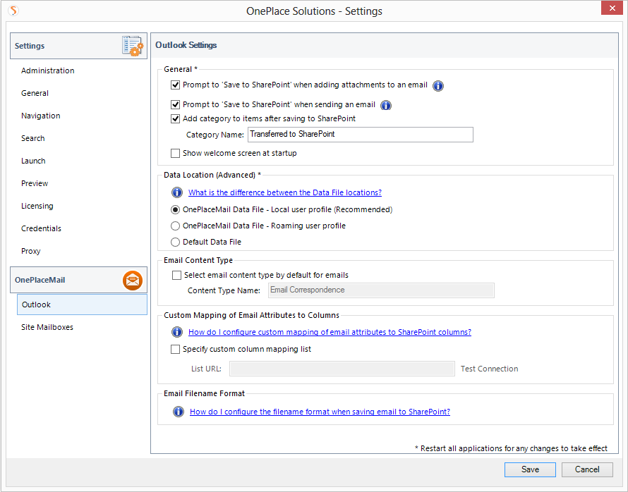 If useColumnMappingUrl ="true", determines the URL of the column mapping list in SharePoint. Example: http://portal/OPM1/Lists/OnePlaceMail%20Column%20Mapping |