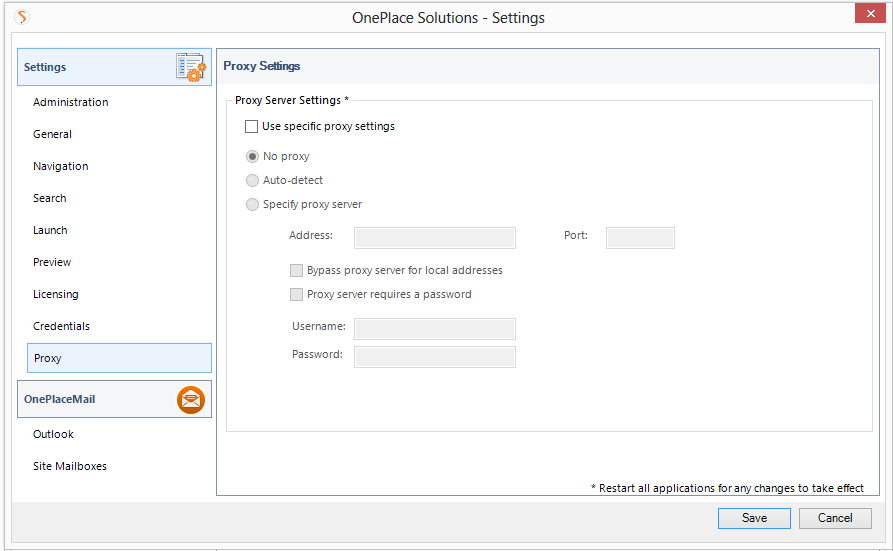 OnePlaceMail uses OnePlaceMail Proxy Settings. |