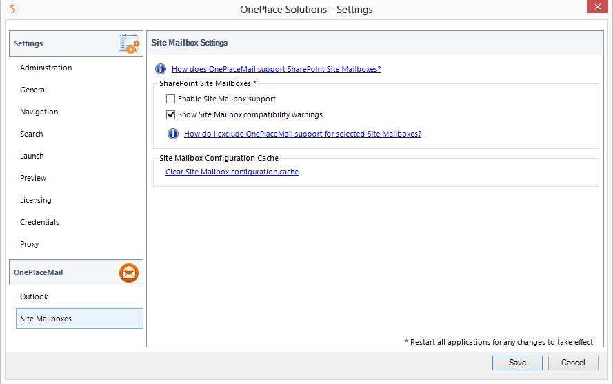 By default, OnePlaceMail will detect any SharePoint Site Mailboxes that