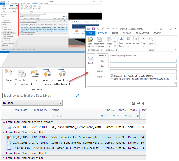 There are circumstances where sending content from SharePoint as an attachment is required. OnePlaceMail allows you to use the ‘Email as Attachment’ for one or more selected items.
