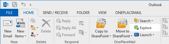 An 'Explore' button will be available on the Microsoft Outlook ribbon if you have a OnePlaceDocs license.