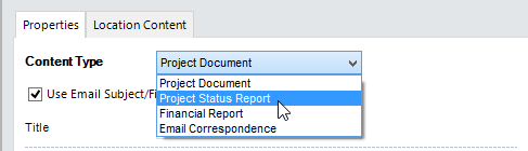 The Location Content tab shows the items in SharePoint / Office 365 for the currently selected location. Actions such as viewing the selected item properties and using the an item's properties as the default vales for the current save process are available via the right-click.
