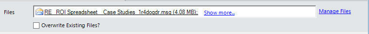 The items being saved to sharePoint / Office 365 are listed in the Files section. Select Manage Files if you would like to modify the name of any file being saved.