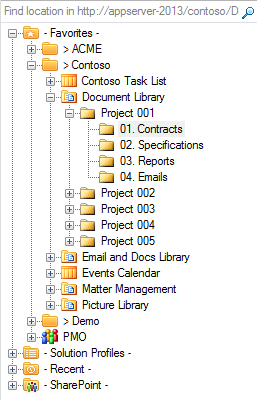 The navigation tree is used throughout the OnePlace Solutions product suite and provides a consistent means for navigating SharePoint.