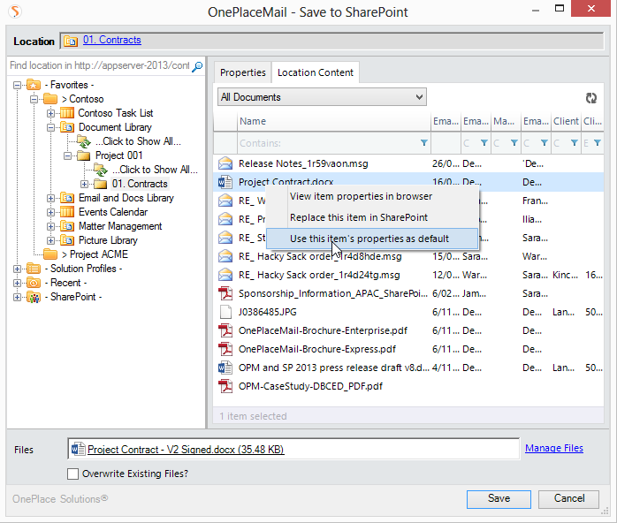 To copy metadata from an existing SharePoint item when saving to SharePoint: