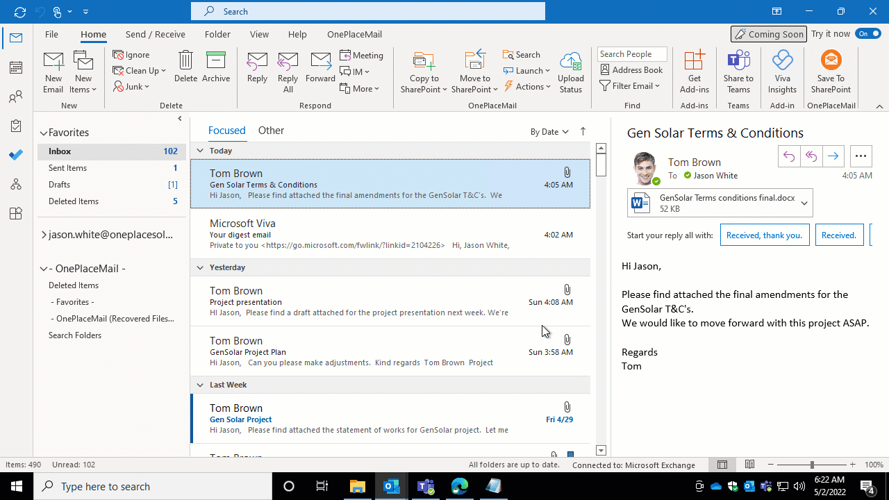 Connect to SharePoint through OnePlaceMail or OnePlaceDocs