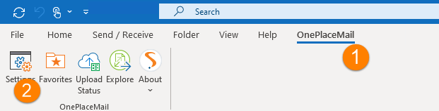- In Outlook, select OnePlaceMail from the menu