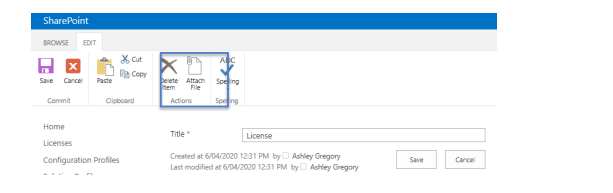 On receipt of the license key from the Customer Success team, attach or replace the license key in the license list in SharePoint .