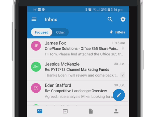 | Access OnePlaceMail via the Outlook app for iOS | Access OnePlaceMail via the Outlook app for Android |
