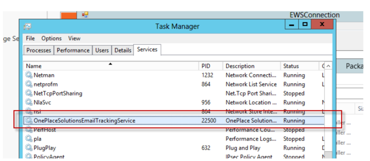 - From services: Locate & start the 'OnePlaceSolutionsEmail TrackingService