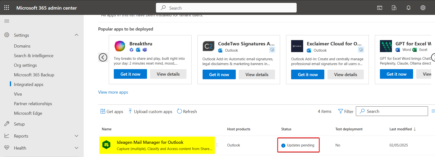 4. You will see that there is an ‘Update pending’ for the Ideagen Mail Manager App