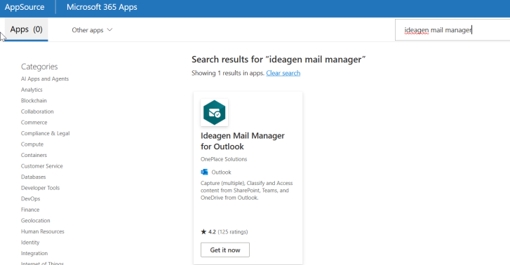 - Search 'Ideagen Mail Manager' and select 'Get it now'