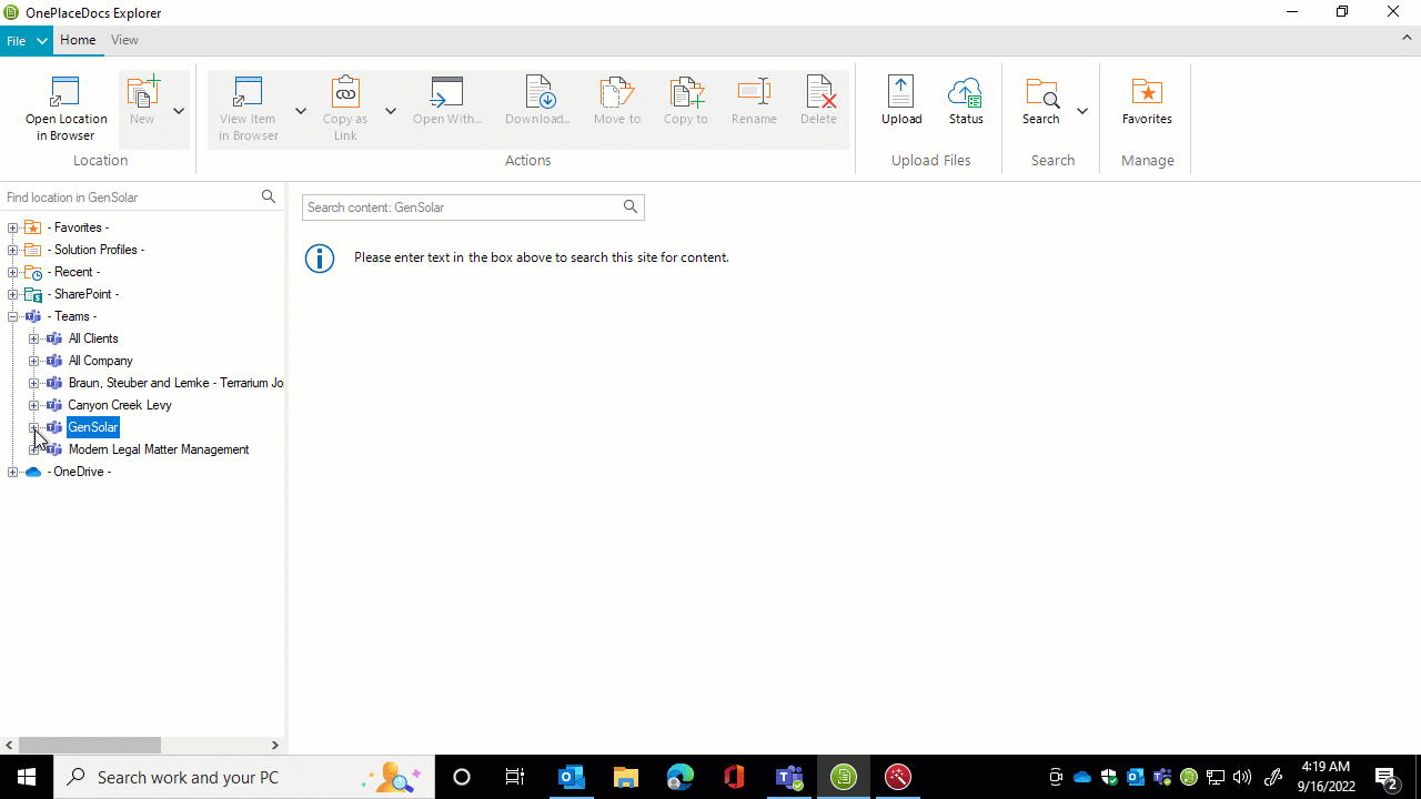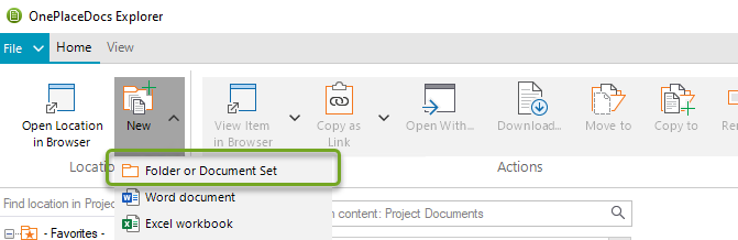 Create hierarchy with folders and document sets (when enabled) without leaving your desktop with OnePlaceDocs.