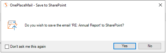 Selecting 'Yes' will present the Save to SharePoint dialog box, allowing the user to select the location in SharePoint to save the email to.